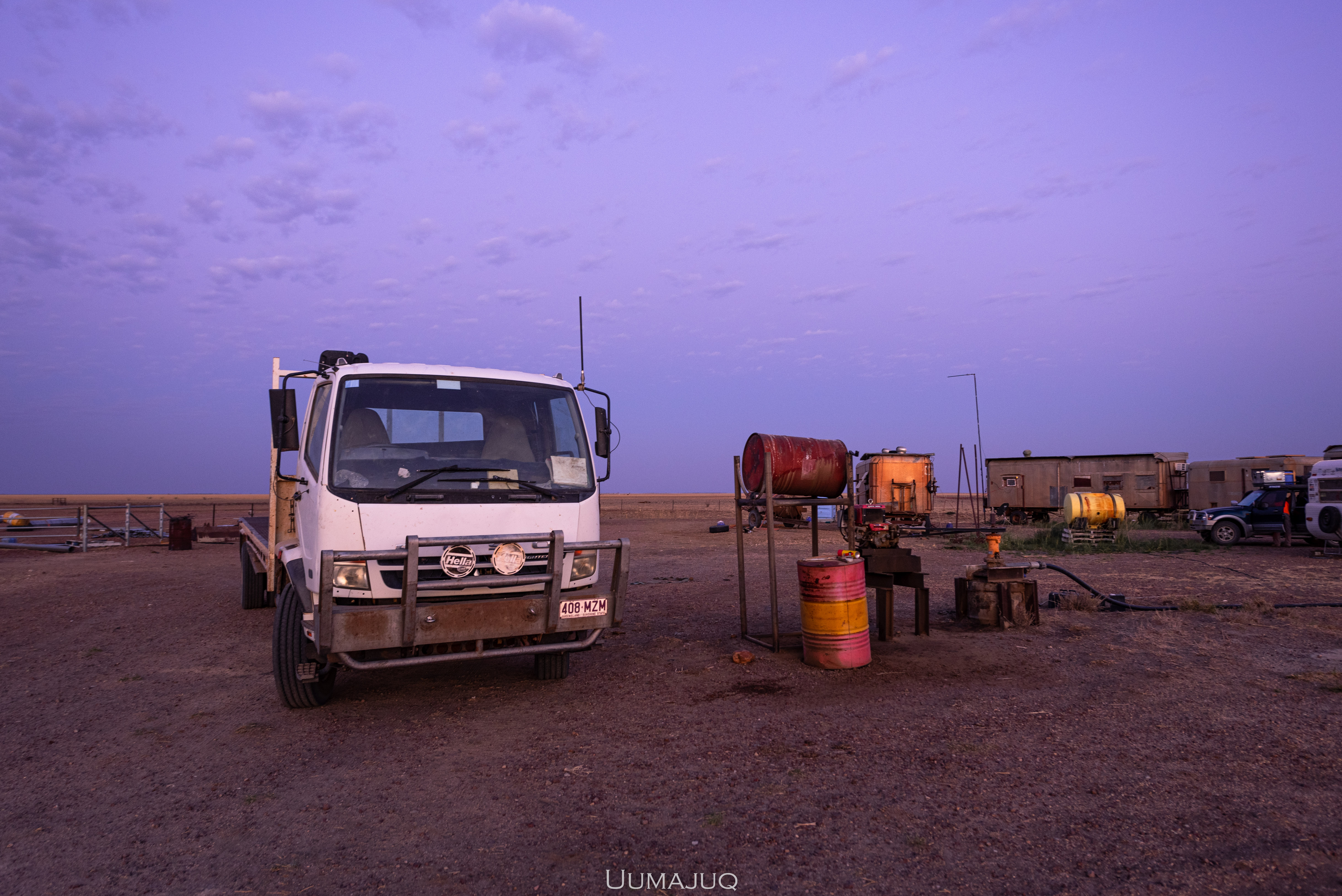 Après quelques jours de vadrouille et de recherches intensives aux alentours d’Atherton, on trouve finalement une offre d’emploi… à 1200 kilomètres de là ! Nous avons reçu une réponse favorable pour aller faire du fencing dans une station en plein milieu de l’outback. En français, ça signifie donc passer 10 heures par jour à mettre en place des clôtures barbelées sous 45 degrés pour délimiter les quelques milliers de kilomètres carrés de désert dans lesquels sont élevées les vaches et cette phrase n’en finit pas – un peu comme ces étendues plates et rocailleuses dans lesquelles nous avons passé deux mois.