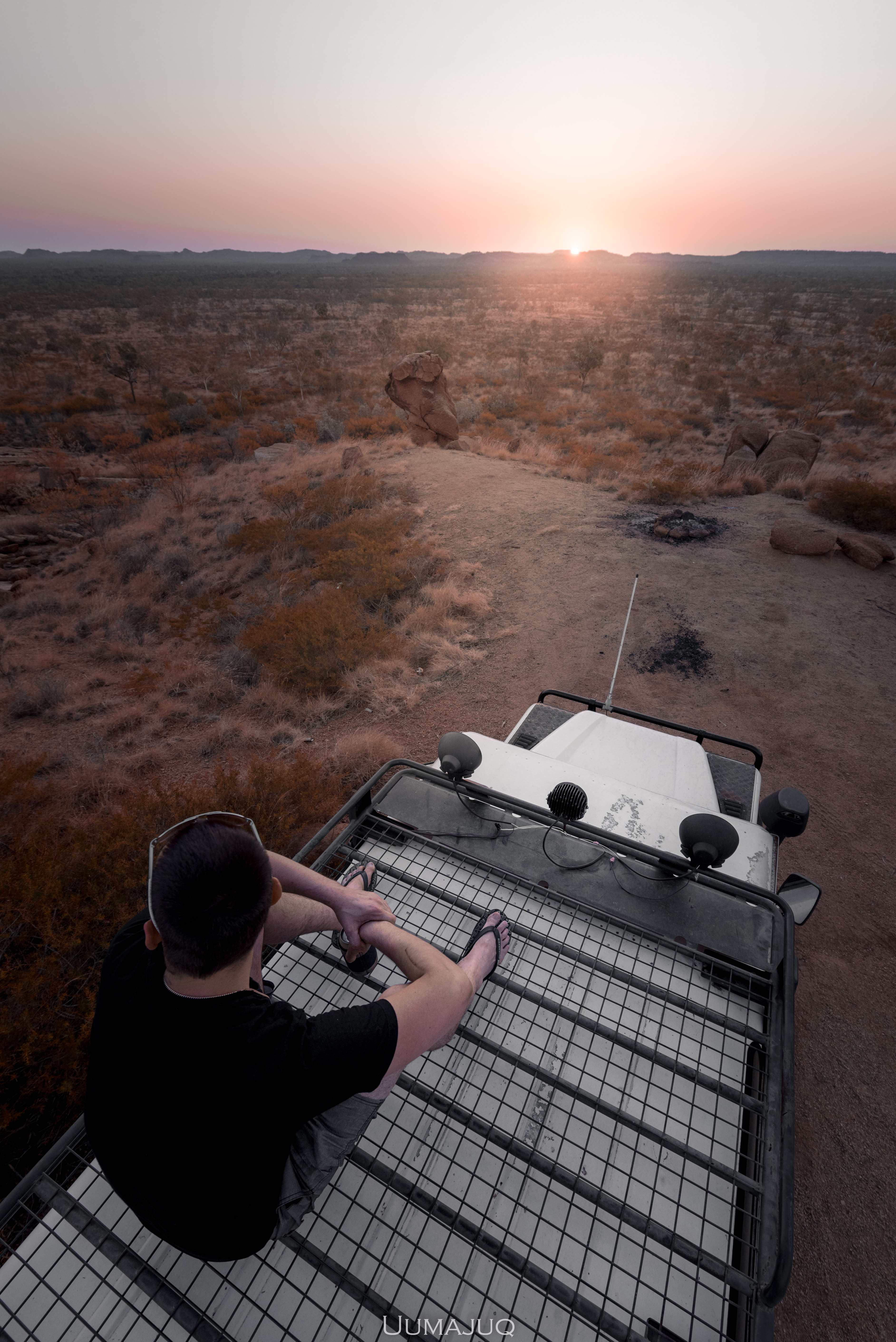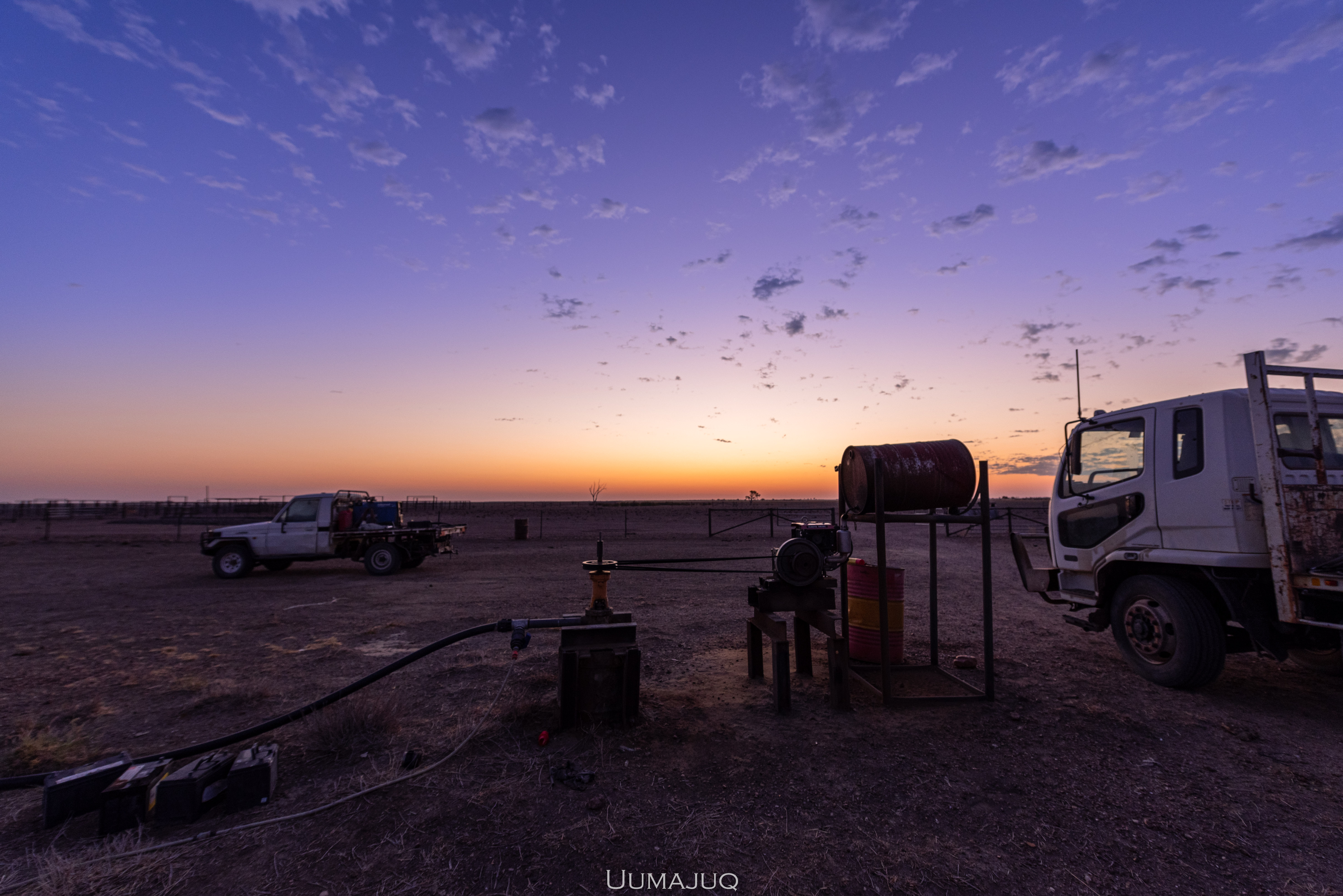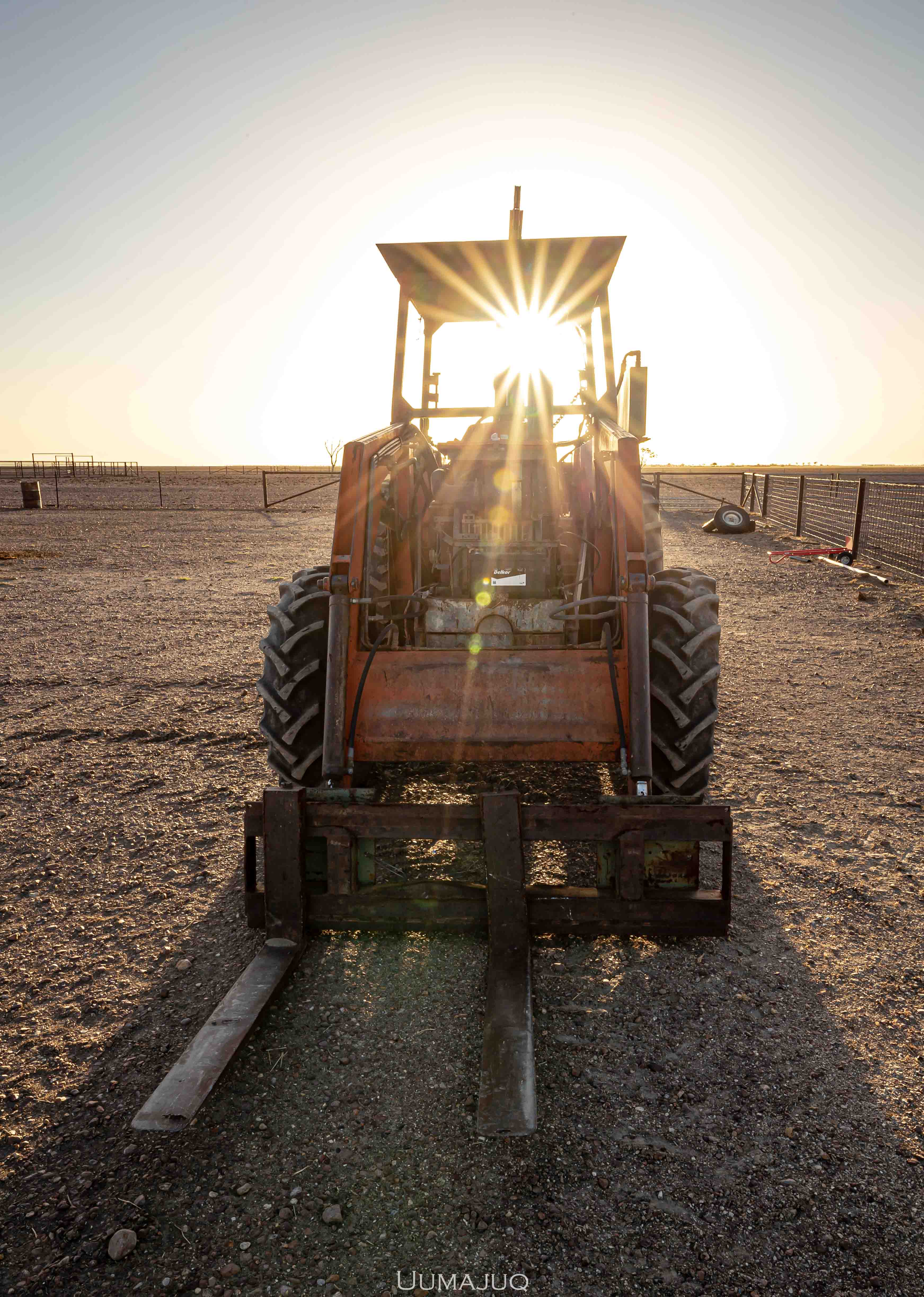 La vie dans le désert est à l’image du paysage qui nous entoure : dure, austère, aride. Les journées de travail sont longues, éprouvantes. On commence souvent avant que le soleil ne se lève, pour profiter des heures les plus « fraiches » de la journée. A 6h00 du matin, il fait déjà 35°C. Durant les premiers jours, Kerry, notre patron, nous accompagne pour nous apprendre le métier. Planter les piquets, tendre les barbelés, conduire les tracteurs, couper et souder des barres d’acier, construire des portails… on ne voit pas le temps passer ! Les journées s’enchaînent, les mouches nous harcèlent par centaines, nous buvons plus de sept litres d’eau par jour (chacun), mais on ne s’ennuie pas ! Petit à petit, Kerry nous laisse nous débrouiller, on ne le retrouve que le soir pour partager une bière au coucher de soleil, chaque jour différent, toujours plus beau.