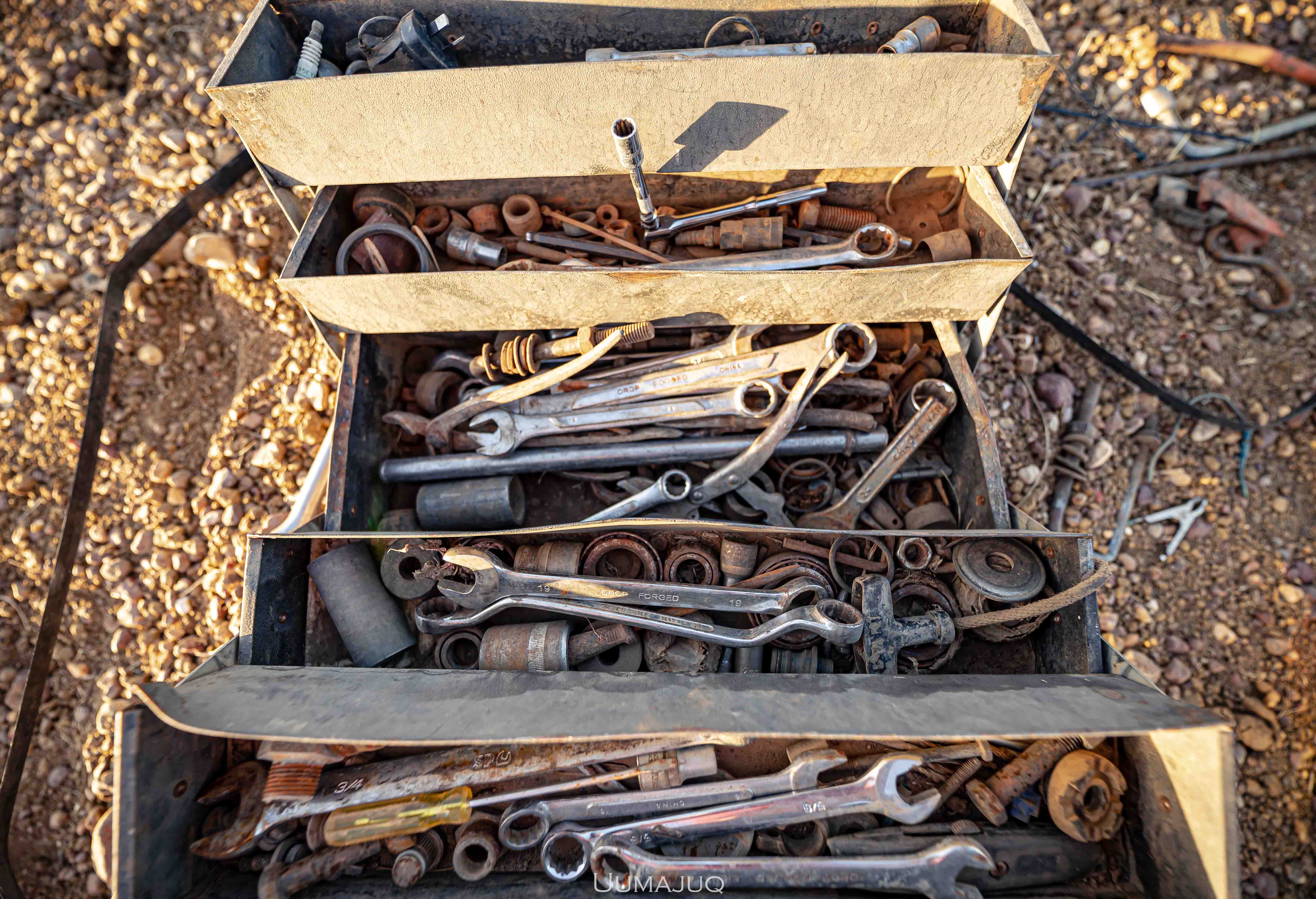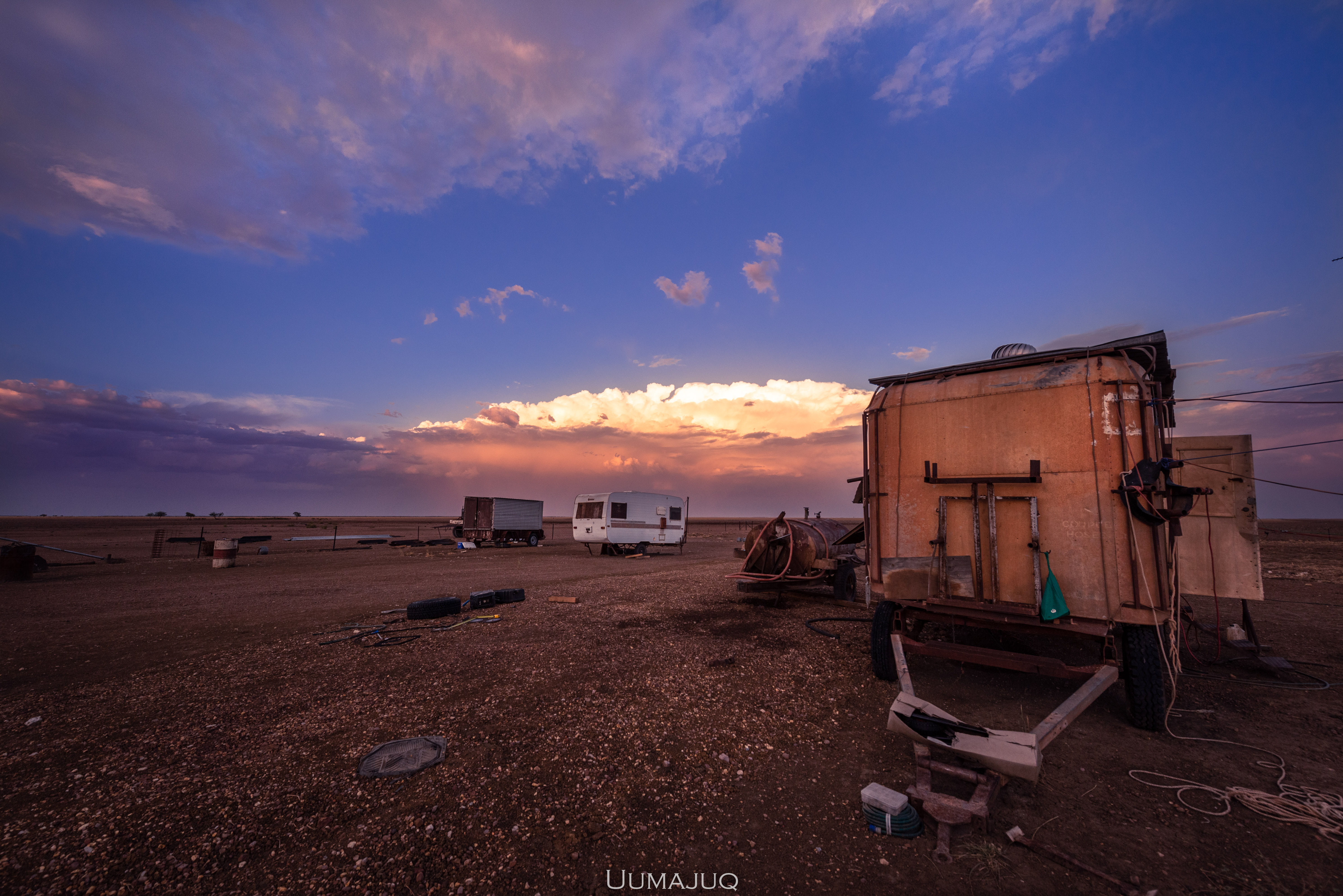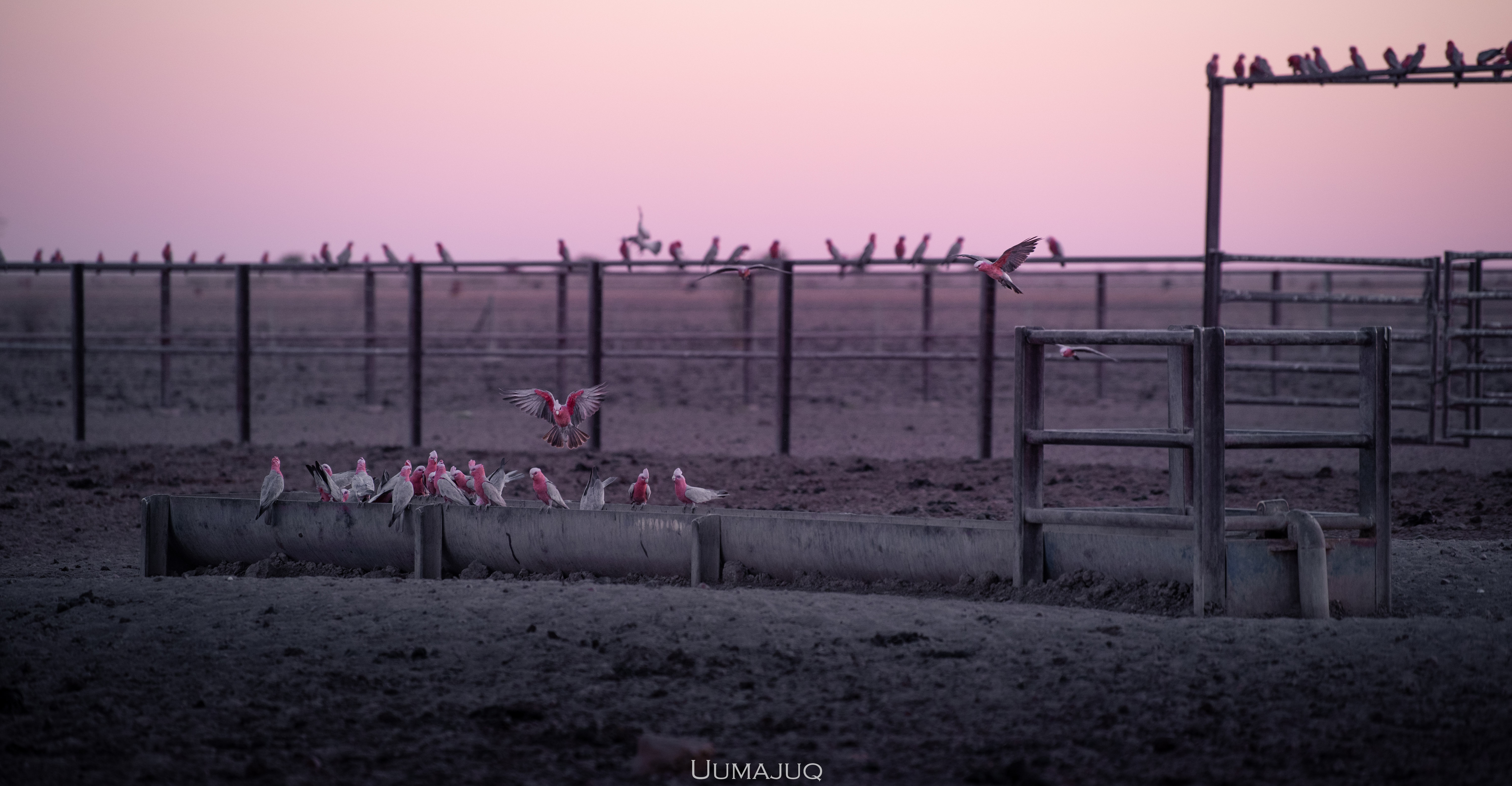 La vie dans le désert est à l’image du paysage qui nous entoure : dure, austère, aride. Les journées de travail sont longues, éprouvantes. On commence souvent avant que le soleil ne se lève, pour profiter des heures les plus « fraiches » de la journée. A 6h00 du matin, il fait déjà 35°C. Durant les premiers jours, Kerry, notre patron, nous accompagne pour nous apprendre le métier. Planter les piquets, tendre les barbelés, conduire les tracteurs, couper et souder des barres d’acier, construire des portails… on ne voit pas le temps passer ! Les journées s’enchaînent, les mouches nous harcèlent par centaines, nous buvons plus de sept litres d’eau par jour (chacun), mais on ne s’ennuie pas ! Petit à petit, Kerry nous laisse nous débrouiller, on ne le retrouve que le soir pour partager une bière au coucher de soleil, chaque jour différent, toujours plus beau.