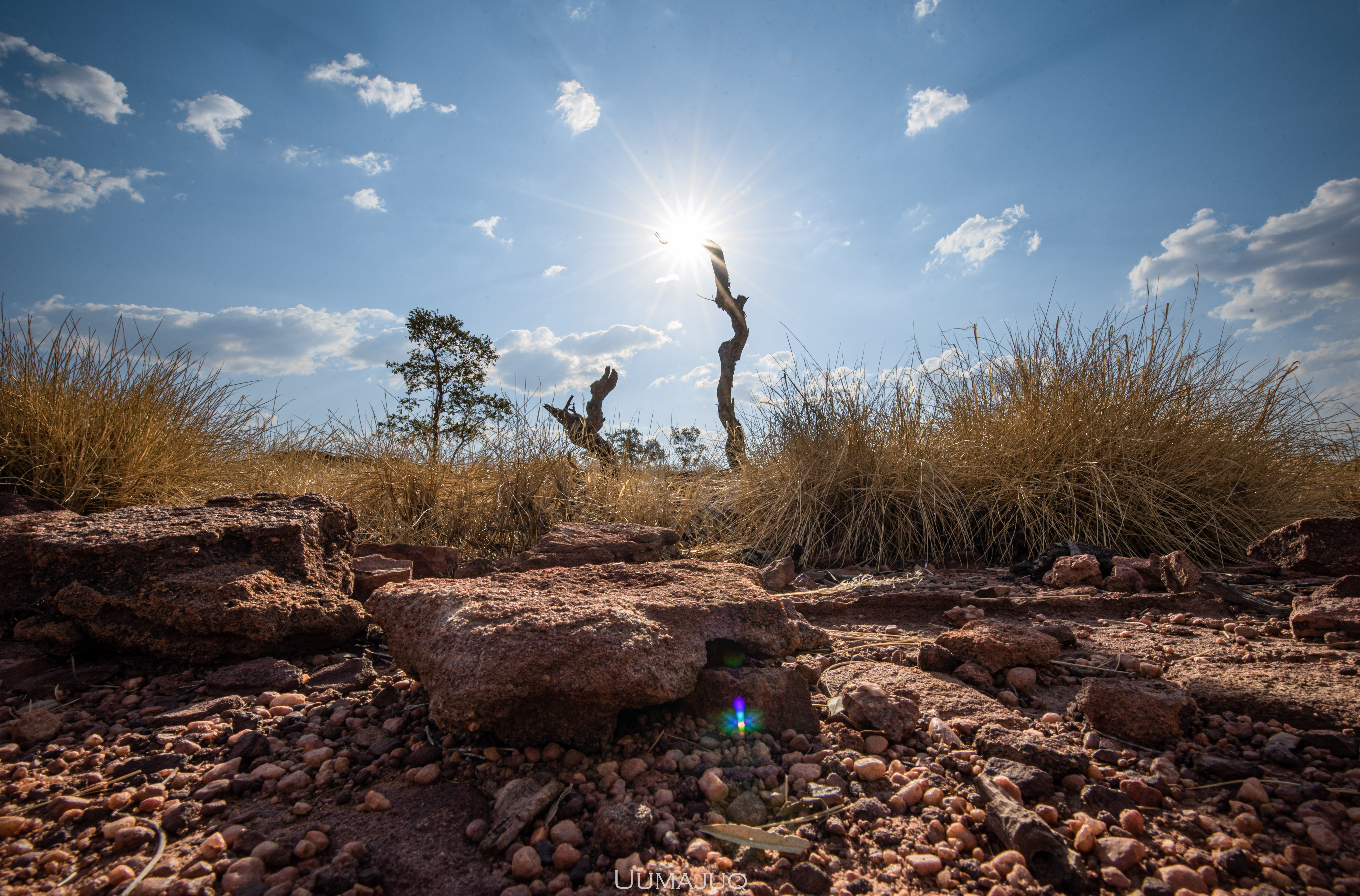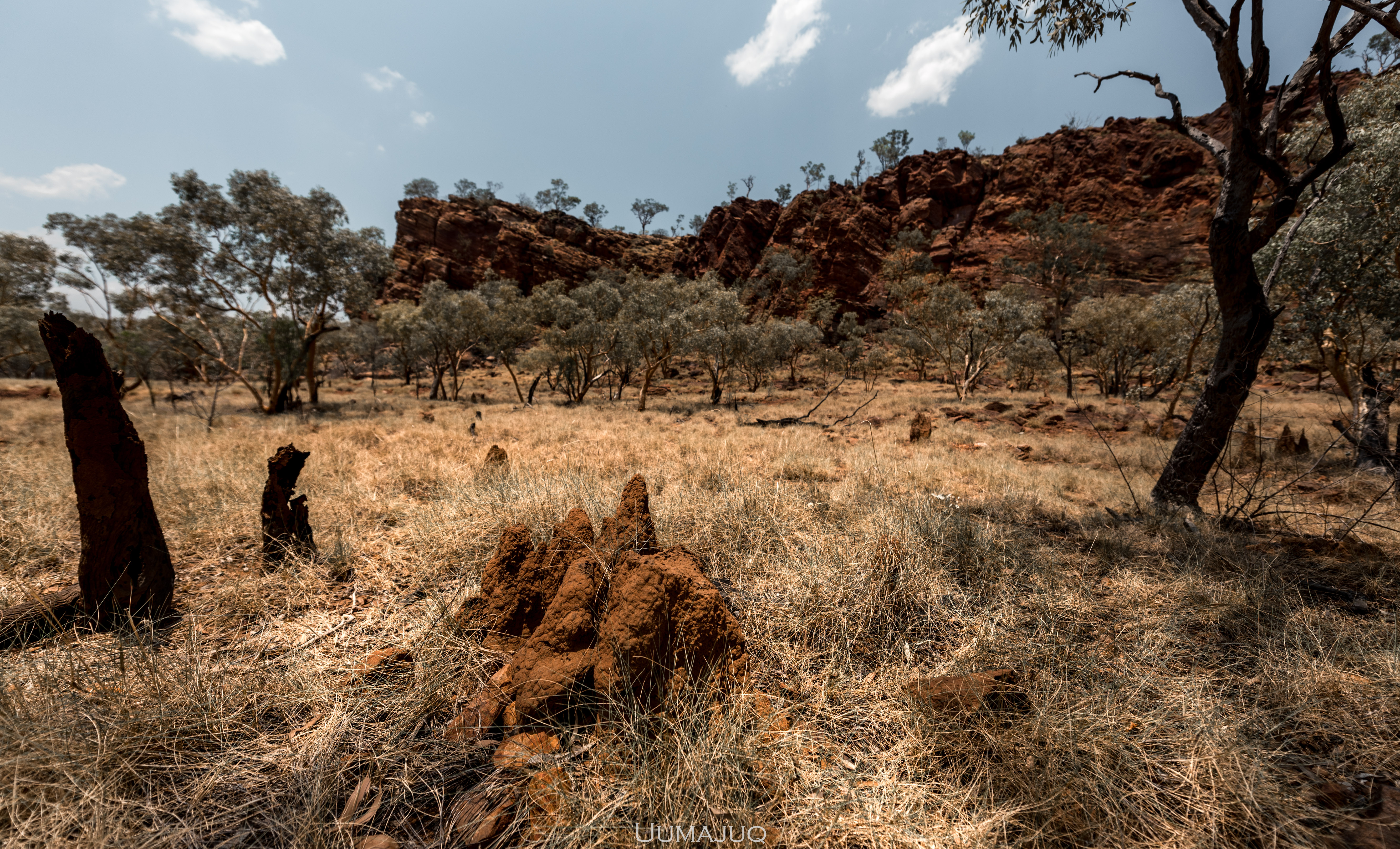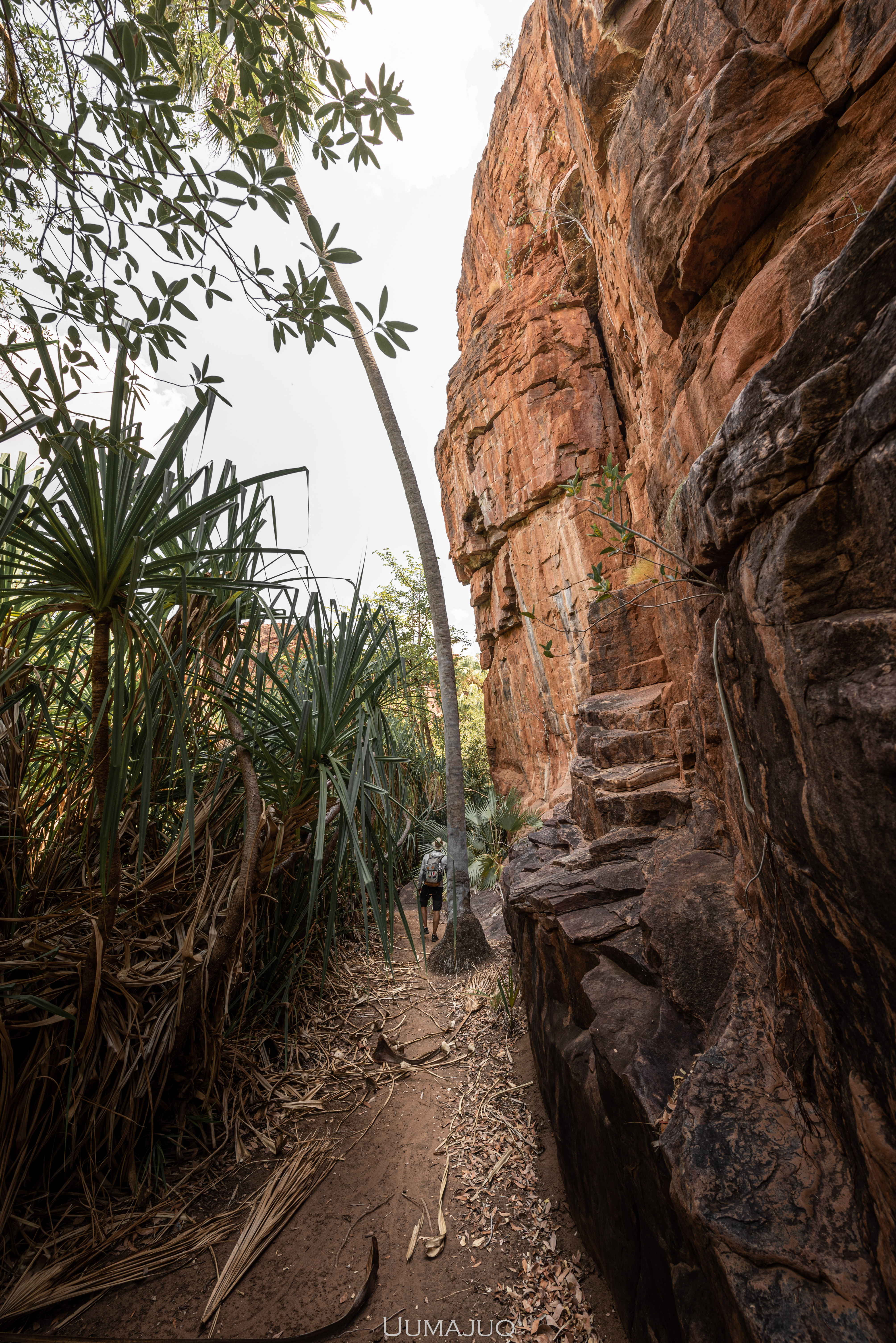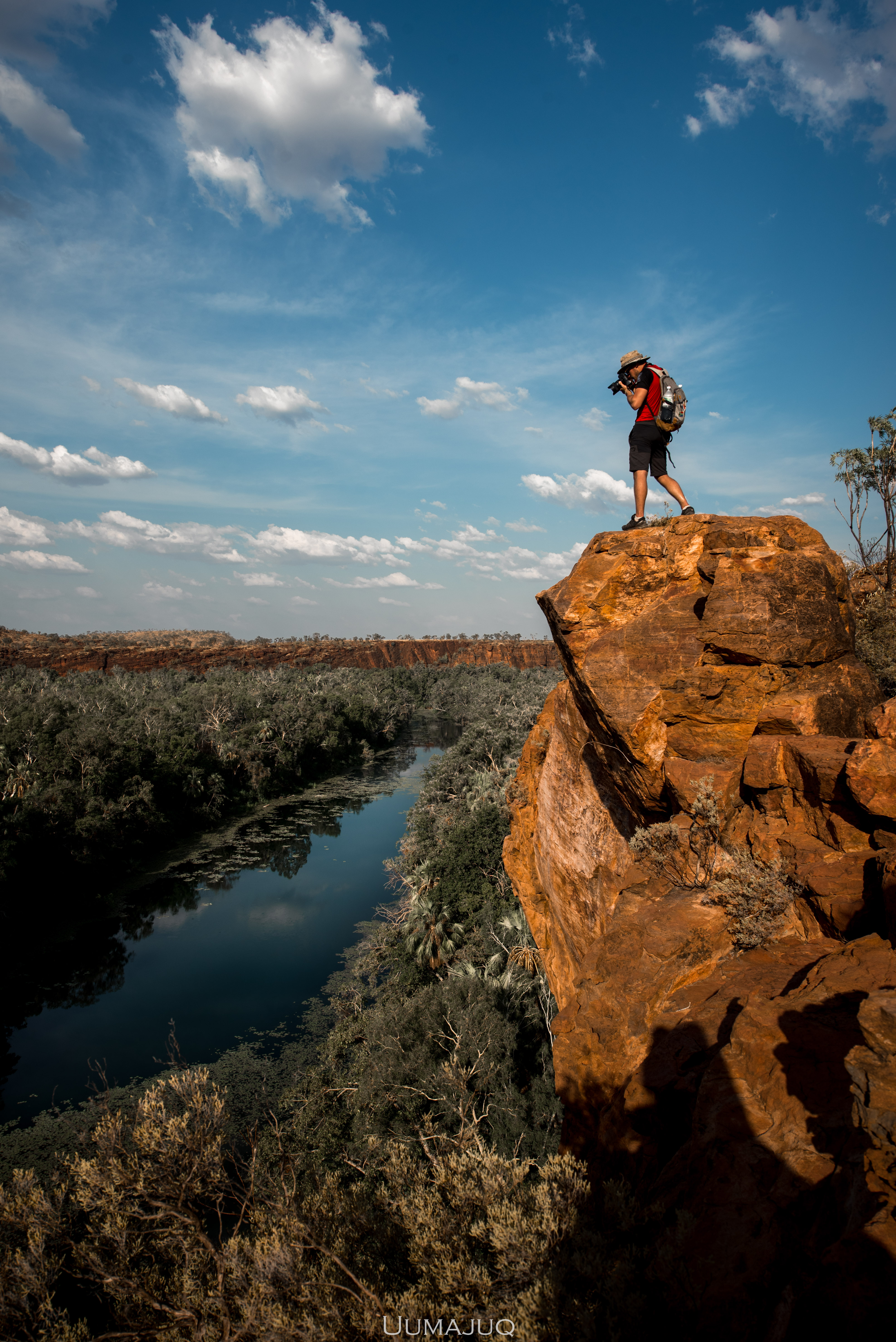 Après deux mois intenses, nos corps sont douloureux et nos esprits ont soif d’aventures nouvelles, il est temps pour nous de quitter le camp pour voguer vers d’autres horizons. Notre choix se porte sur le parc national de Boodjamulla (Lawn Hill), situé à environ 300 kilomètres au nord de Camooweal. On vous l’accorde, la saison humide n’est sûrement pas le moment idéal pour découvrir cet oasis. Les températures ressenties atteignent maintenant 50°C en journée, restent au dessus de 35 la nuit, et il devient vraiment difficile de dormir dans la rooftent. Le simple fait de marcher demande une énergie considérable. Heureusement pour nous, le parc est sillonné par deux rivières dans lesquelles nous avons passé la plupart de nos journées !